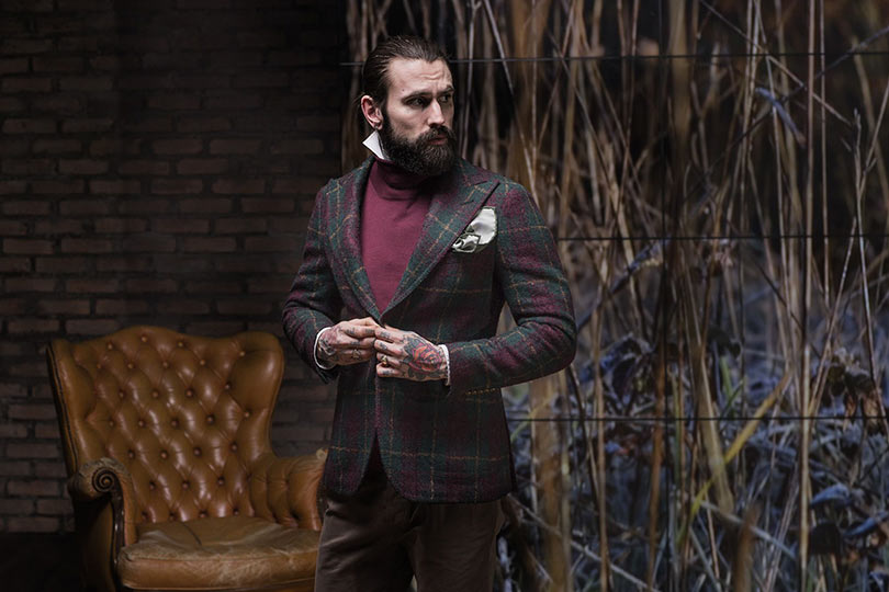 Utilizzo di tessuti vintage e accostamenti inediti caratterizzano il dandy contemporaneo di Gabriele Pasini. Il sarto modenese ha creato uno stile unico diventato iconico.